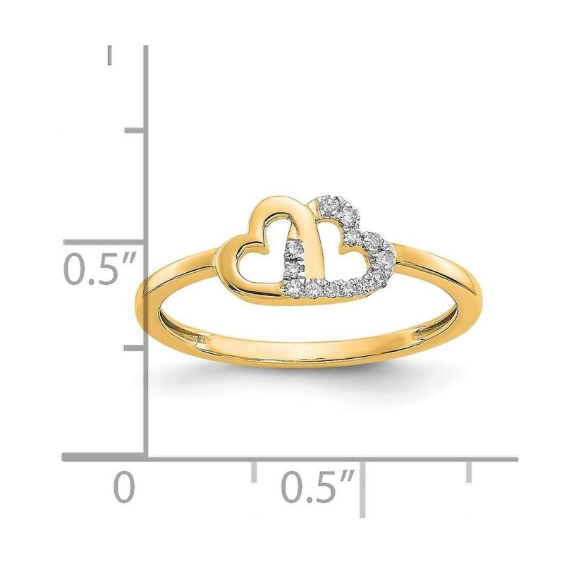 Anello a doppio cuore in oro 10 carati con diamanti da 2 mm, misura 7,00, ideale come regalo per lei